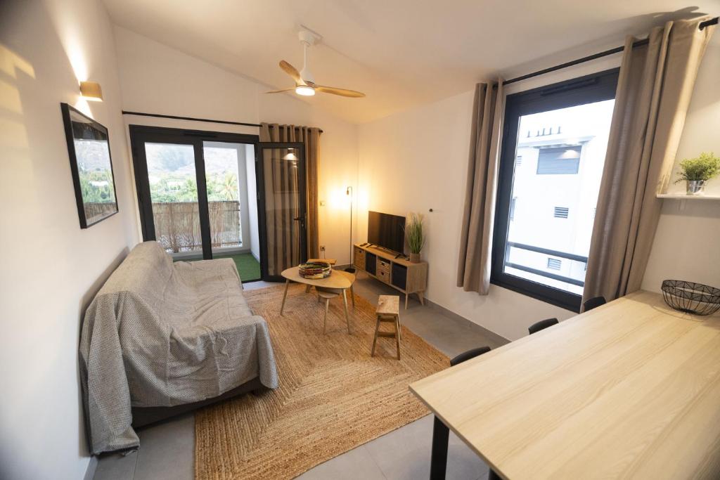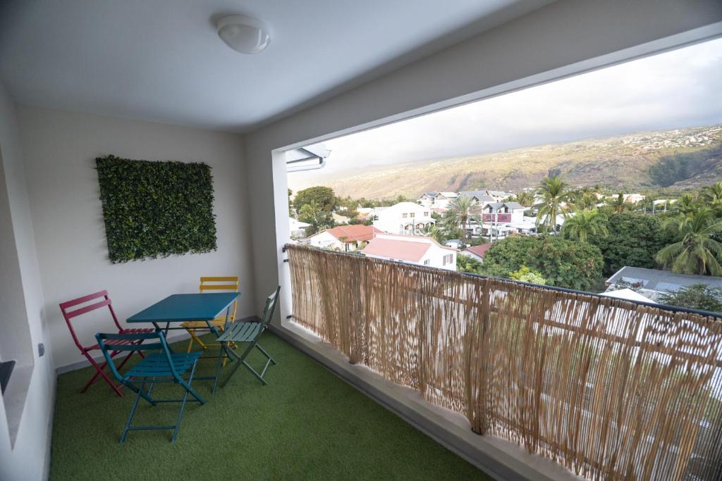Comfortable apartment in Saint-Paul with balcony, mountain view, air conditioning, free private parking and beach within walking distance.