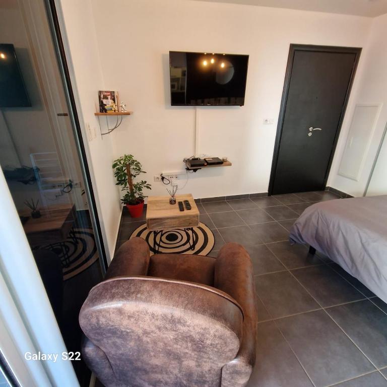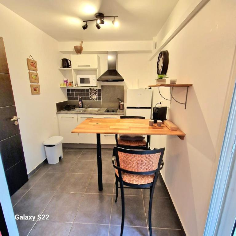 The studio features a terrace, free Wi-Fi, free private parking and air conditioning. It includes a comfortable sleeping area, a bathroom and an equipped kitchen for a simple and pleasant stay.