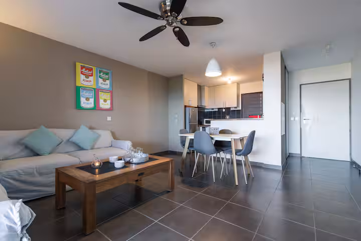 Spacious air-conditioned 2-bedroom apartment in a recent residence with private residential pool and lagoon view. Located in La Saline-les-Bains, the property lets you enjoy a peaceful setting while staying close to the lagoon, shops and restaurants.