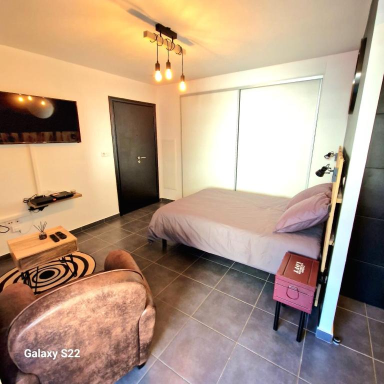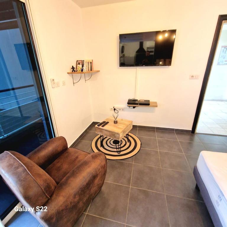 Le studio dispose d’une terrasse, d’une connexion Wi-Fi gratuite, d’un parking privé gratuit et de la climatisation. Il comprend un espace nuit confortable, une salle d’eau et une cuisine équipée pour un séjour simple et agréable.